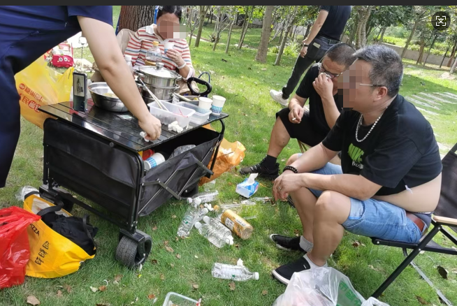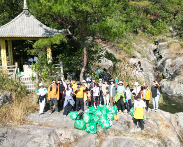 ▲游客志愿者在北辰山景区主动拾检垃圾