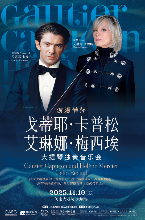 法国大提琴家戈蒂耶·卡普松,身为当今年轻一代最为杰出的大提琴家,在乐迷心目中早已是名副实的“男神”。 此次来厦,这位在全球音乐舞台上光芒四射的大提琴王子,将与钢琴家艾琳娜·梅西埃首次携手造访闽南大戏院,凭藉登峰造极的演奏技艺与厚重的艺术积累,为厦门观众带来一场直击心灵的惊艳演出。这场音乐会不仅是大提琴与钢琴的巅峰对话,更是一次穿越乐史长河的浪漫巡礼。从印象派的光影斑斓到德意志的严谨高贵,再到法兰西的优雅缱绻,两位艺术家以琴为媒将作曲家笔下的情感肌理与文化意蕴在指尖流转间焕发光彩。