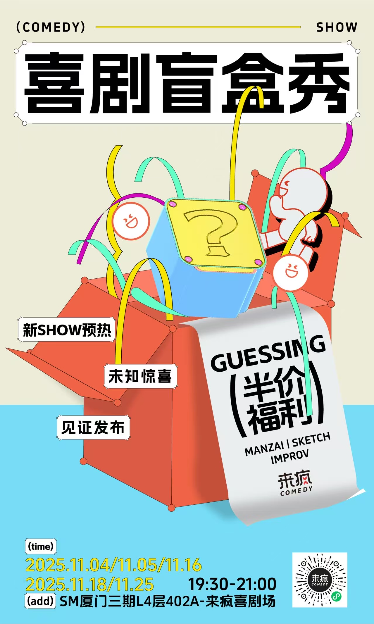 在盲盒秀中你有可能解锁单口喜剧、即兴喜剧、亲子喜剧、素描喜剧和漫才喜剧等形式。不仅能收获喜剧的快乐,还能体会到盲盒的刺激惊喜。