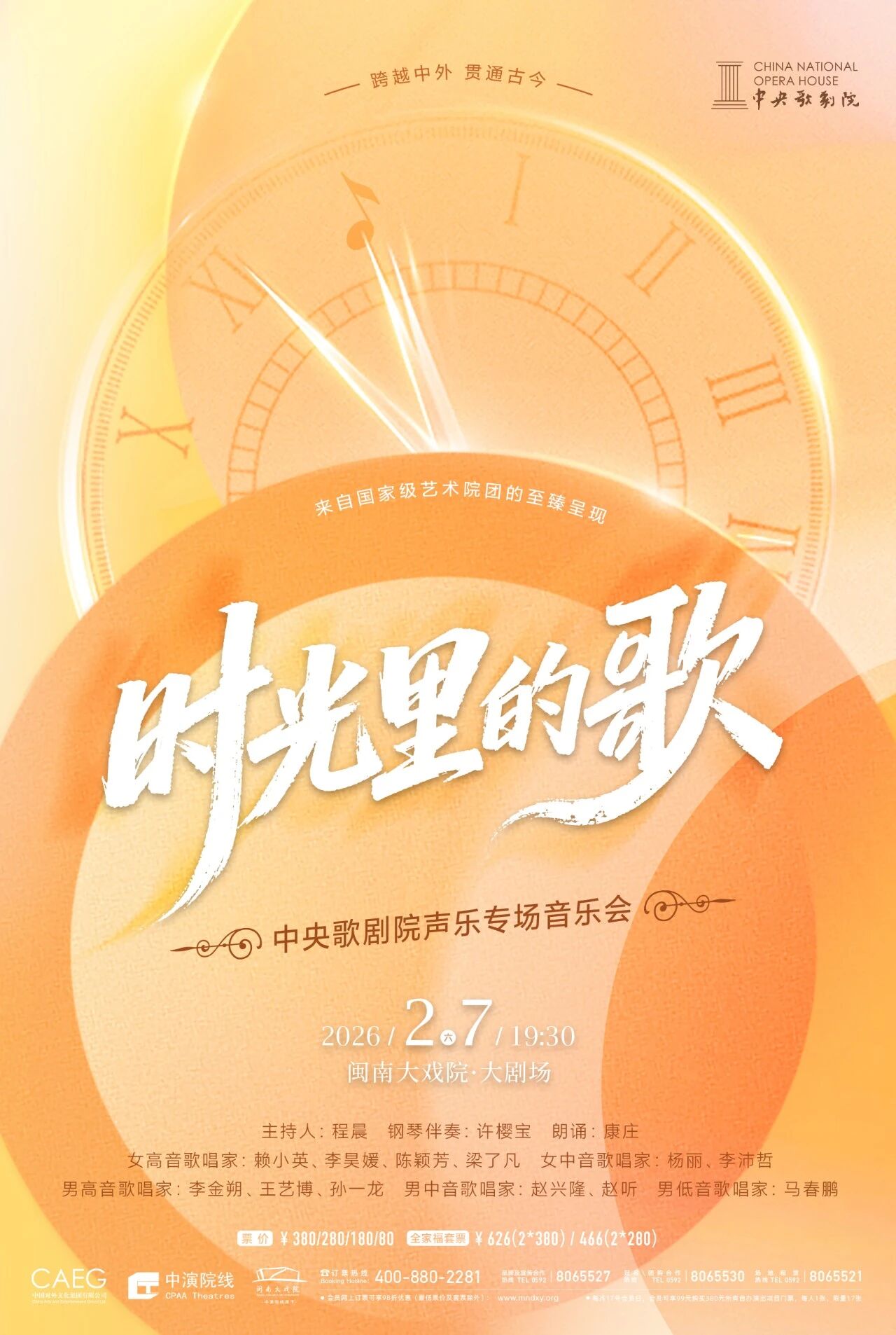 中央歌剧院“凭清唱圈粉百万”的“游吟诗人”男生重唱组将携手中央歌剧院多位国家级艺术家登台闽南大戏院,带来“时光里的歌”中央歌剧院声乐专场,音乐会众位艺术家将献上《卡门》《唐璜》《茶花女》等数部歌剧经典片段及中外名曲,为鹭岛观众呈现一场殿堂级的声乐盛宴。