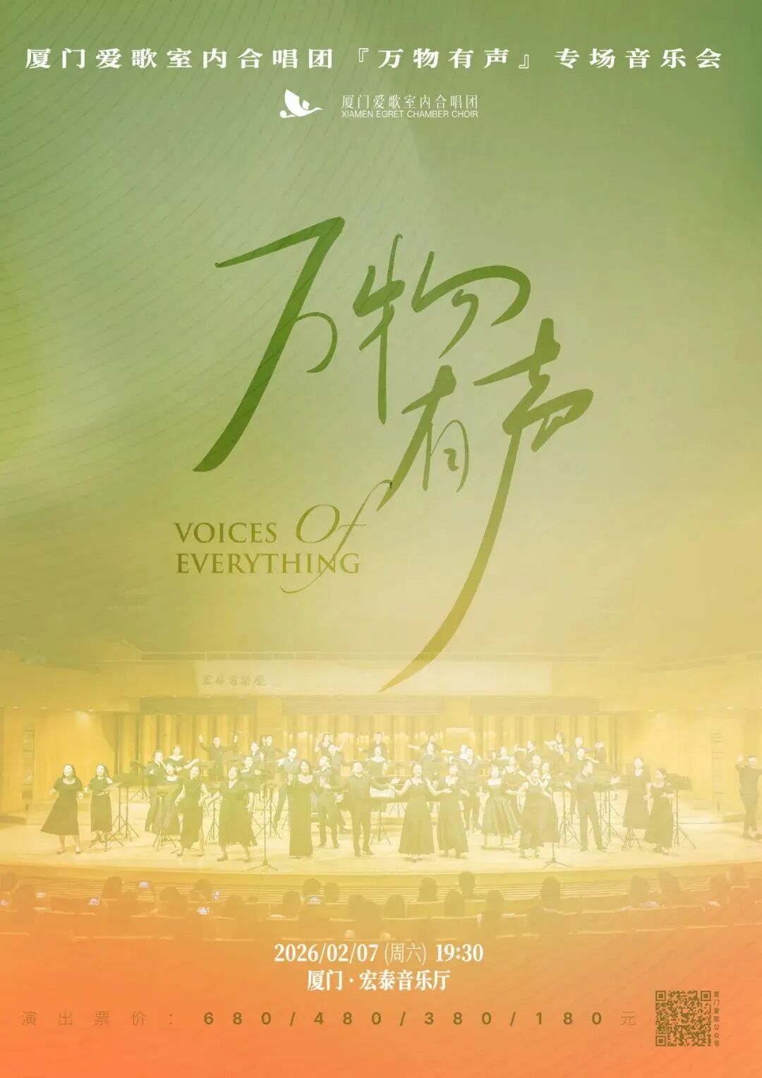 风穿骑楼的轻吟,浪吻沙滩的絮语。十年坚守,声声不息,每一段和声,都是热爱与坚持的沉淀。这场相遇是属于厦门与爱歌的春日浪漫序曲,本场演出将以古今交织的旋律脉络,为你铺展一幅跨越千年的情感长卷。春日来信,邀您一同走进厦门,静听『万物有声』