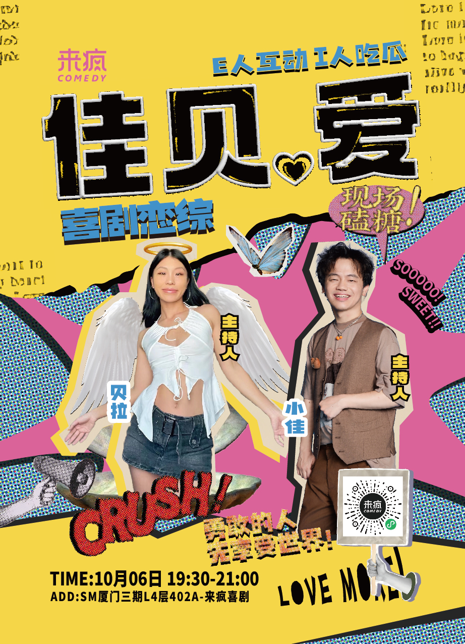 在演出现场你将有机会在红娘和天使的互动下,上台亲身体验被丘比特之箭击中的感觉。交友配对、爱的告白、默契问答。如果你有Crush、暗恋对象、暧昧对象,这将是你们彼此感情在爆笑荷尔蒙加持下增进一大步的最好时机。你将会在无剧本、无预演、脑洞大开的即兴世界看喜剧演员们爆笑复刻“恋爱那些事”。