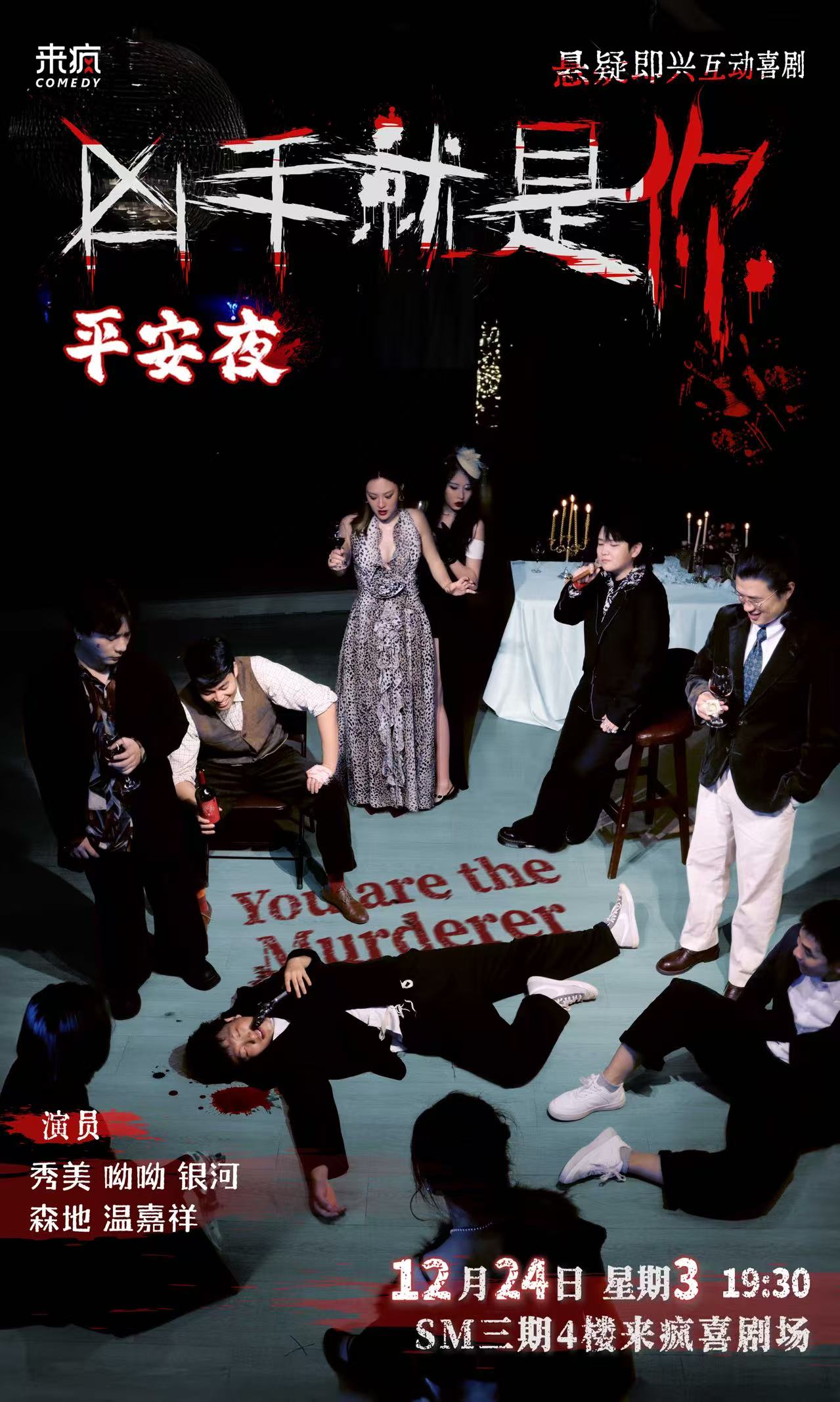 《凶手就是你》平安夜特辑来了,邀你沉浸式当福尔摩斯,体验现场破案,每个观众都是“目击证人”,并且你的每一句话都可能改变结局。1场演出,解锁6种玩法:沉浸推理+近距离互动;暗中观察 +高频对话交流;隐藏任务+终极投票锁区。凶手到底是谁?等你投票锁定!