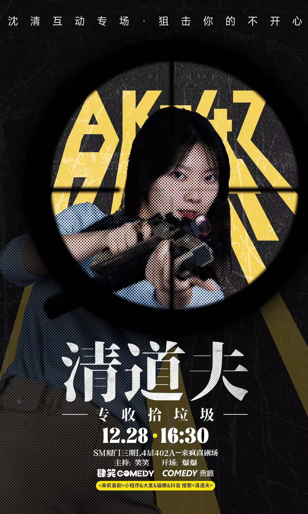 大家好,我是二维马。写专场的时候,有过一些热血而中二的念头,比如什么:“要用这个专场,唤醒社会的良知;痛击癫狂的行业”之类的。但是最后我发现,大多数时候人就是做不到理想中的自己。我不能既有趣,又高尚,既痛快,又悲悯,既清醒,又融入,但很容易既丑又恶。所以还是尽力找了一些能被他人理解的荒唐,同时也努力包裹进几句能代表我这个人的肺腑之言。(十三)沈清互动专场《清道夫》