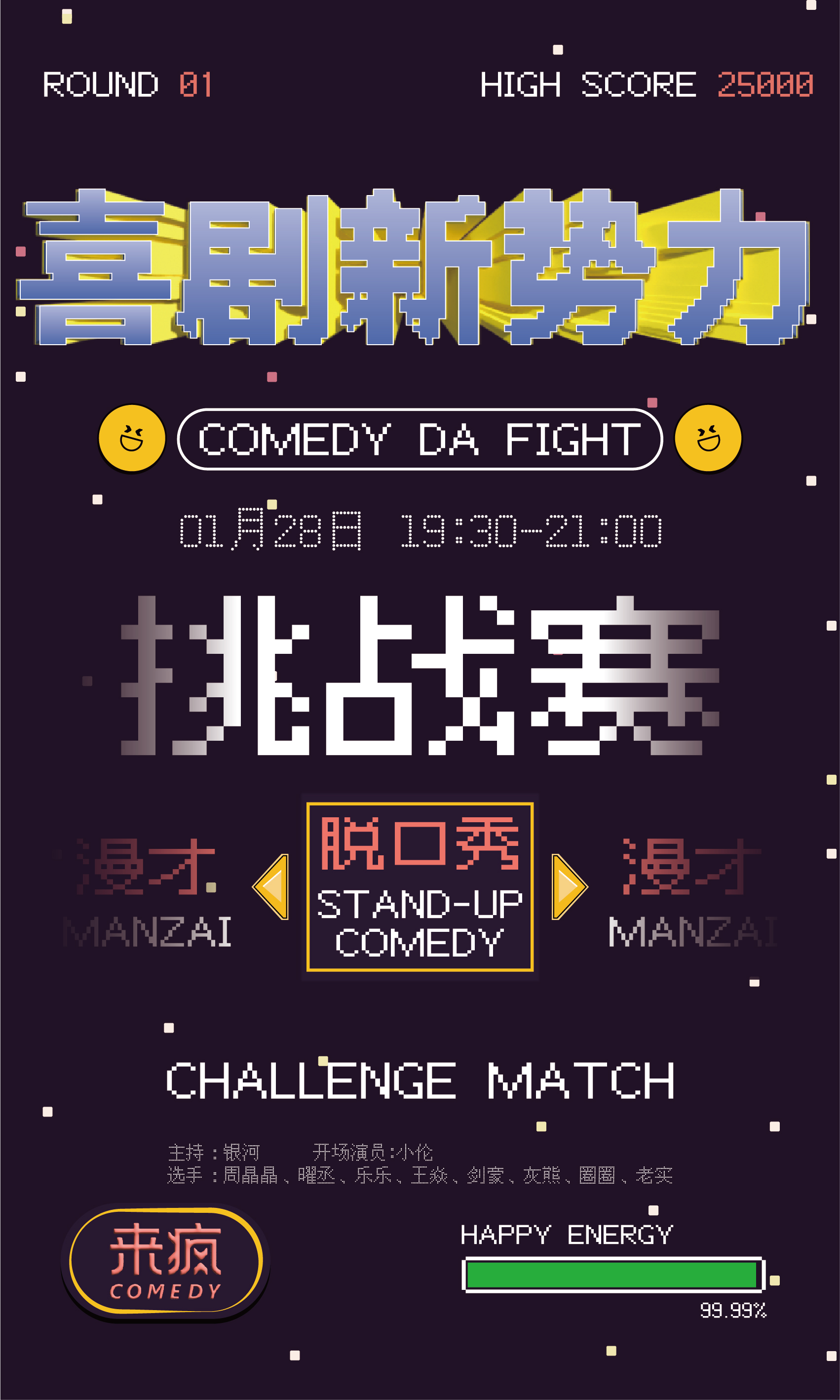 喜剧的擂台已经搭好,来疯喜剧特色“挑战赛”模式,演员将在脱口秀与漫才的擂台上爆笑对决,争夺唯一擂主宝座。超高性价比,一晚看尽多种喜剧形式,现场互动投票,决定冠军归属。一场火花四射的喜剧擂台战,等你来见证冠军诞生,选手们的出道位由你投票决定,刺激好玩,互动拉满。