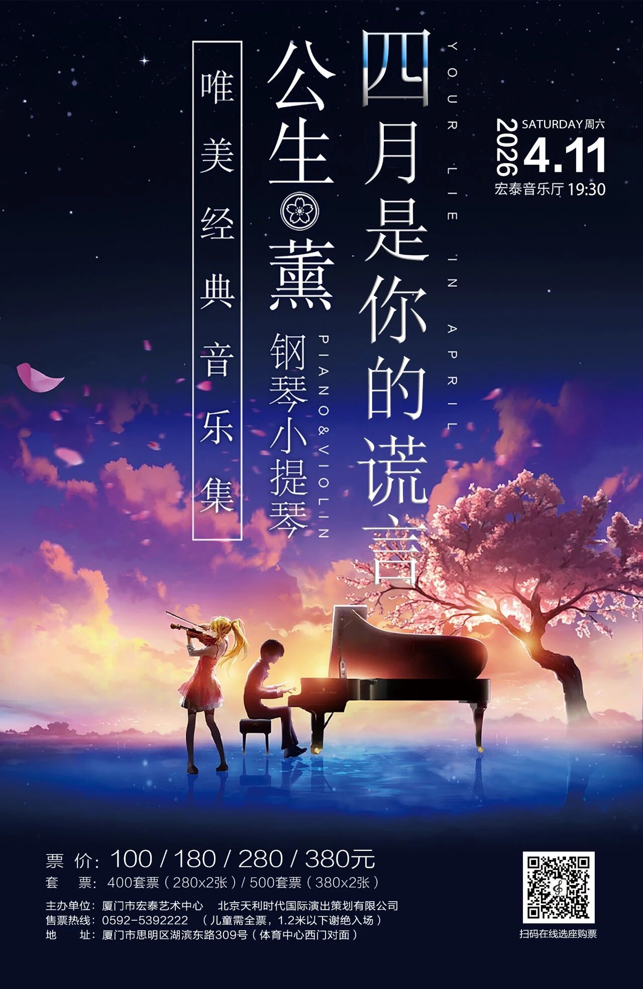 如果你看过《四月是你的谎言,相信你一定会来听音乐会。如果你没有看过《四月是你的谎言》,那你一定要看完再来听这场钢琴家何立岩和小提琴家伍思雨带来的音乐会,这是一场钢琴与小提琴的浪漫邂逅。